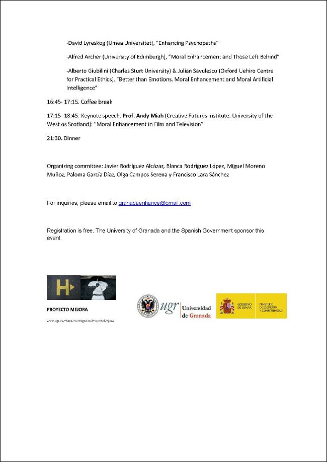 II INTERNATIONAL WORKSHOP IN PRACTICAL ETHICSBIOETHICS AND HUMAN ENHANCEMENTGranada, June 16-17, 2014